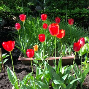 黄色からほぼ赤いチューリップになりました。 手品のようです。