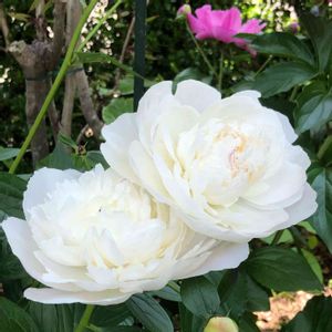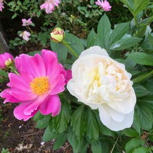 八重咲きの芍薬 蜂🐝も訪問してます。