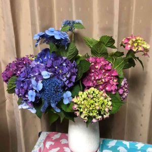 紫陽花 枝が伸び過ぎたので 整理した枝を花瓶に! 額紫陽花以外は同じ株 色がいろいろ
