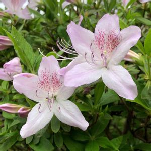 色混じりのツツジ、 花ごとに模様が異なります。💓 木が育って、こじんまり仕立てるのが難しい。😟