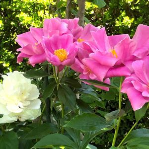 芍薬 赤に白、ちょっと時間差あります。 雨が無いので長く、拝見しています。😘