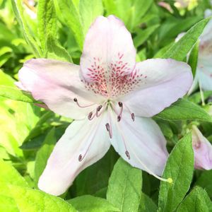 白に薄ピンクがのったつつじ、 今沢山蕾があり、楽しみ!