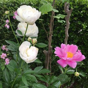 白のシャクヤクも咲き、紅白になりました。🤗 シャクヤクは日差しの方向に伸びるので観賞しにくくなってしまう。😿
