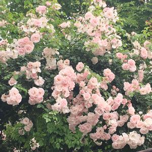 つるバラのニュートンと記憶してます。 つるというよりも良く伸びる! この花は今年の1号です。🌸 淡いピンクです。 アーチ状に沢山のつぼみが控えてます。