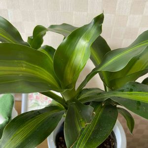 幸福の木 ドラセナ マッサンゲアナさん✨ 艶のある綺麗でな葉です。 葉に入る斑?が涼しげに見えます。 我が家にも1鉢ほしいんですが、マッサンゲアナさんにあう環境では無いので諦めます。(╯︵╰,)
