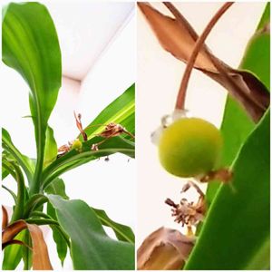 おはよう~ございます😆冷え込んでます☁️ ~幸福の木~です🌿 12月に花が咲いた後、 小さな実が付いています。 花は沢山咲いたのに、1個だけです。 これから、どうなるのかな?