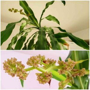 幸福の木開花しました *.(๓´͈ ˘ `͈๓).* お友達に挿木を頂いて3年目での初開花です✧*。 朝は花が開いていないのに、夜になると花弁が反り返った小さいお花が沢山咲いています。 匂いは...かなり強めで、ここはお花屋さん?って感じの香りです(´▽`;) '`'`