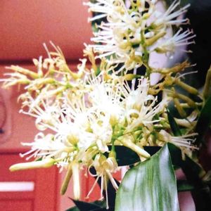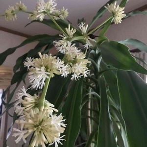 おはようございます☀️ ドラセナ(幸福の木)のお花です😄 ジャスミンの様な香りで、部屋中良い香りがして、癒されています☺️ 育ててから、 13年も育ってくれていて、これからも大切に育てたいと思います😊