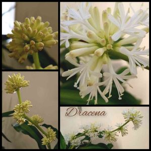 頂き物の幸福の木5年たって花が咲きました。 凄い香りを放ってます。 百合みたいなかんじ