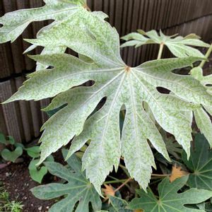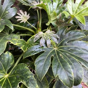 ヤツデ スパイダーウェブ Fatsia japonica 'Spider's Web' 気付いたら花が咲いてました🌻 斑がどうなっているかを、 あらためて見てみたら、 新しい葉は斑が鮮明に入り、 葉が大きくなるなるにつれ、 斑が薄くなり緑色の葉になる、 …ようです💡 一般的にこんな感じなのか、 他の方はどうなのか… 気になります( ̄ー ̄)🌀