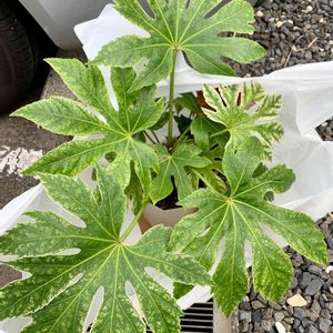 2017年に購入したヤツデ・スパイダーウェブ。 なかなか大きくならなかったけど、3年目で斑入りの葉が沢山出ました。