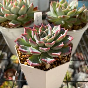 今日は朝から気持ちの良いお天気です♪ 多肉棚で最近一際目を引いている、 この子。 残念ながら「エレガンスの交配種」とだけ🥲 写真では色が出なかったのだけど、 もっと青みが強くピンクも際立って美しい子なんです😍 VERVE さんの通販の5500円以上お買い物すると買える99円のオリジナル交配の子。 今後の紅葉も楽しみです💕 最近葉数の多い子がマイブームなのかも💕💕
