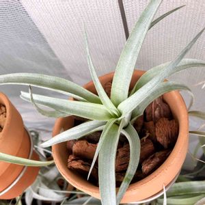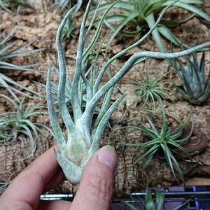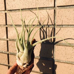 こちらはチランジア・ゴードンCさんです😊 アエラントス✖︎テヌイフォリアの自然交配種です🌱 痛んでいた葉をカット✂️してしまったのとまだ小さい草体なので、見た目には少しみそぼらしいですが、非常に丈夫です‼️👍両親の特徴が出ていてこれからの成長が楽しみです😆 風が物凄いです‼️チラ等、外管理されている方は早めの避難を🙇