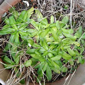 12/10(火)雨止みました ☁️🙂 おはよーございます(⌒▽⌒)小さい庭の朝の見廻りしています。 今朝のpic 何だか解りません🤨🧐夏のオクラや茄子🍆を育てたプランターに生えてきた草ですが......雑草と言う名前の植物はないと思ってるので知りたいです。