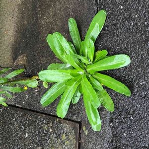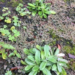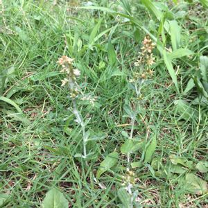 中心・下側の 全体的に丸い感じの植物の名前がわかりましたら 教えて下さい。雑草だと思います。葉っぱの 裏側は 白いです。よろしくお願い致します。