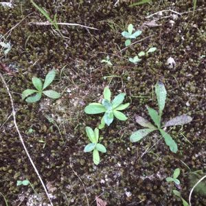 ドクダミの茂ってるところに作った獣道(私が歩いてできた道!)、気がついたらウラジロチチコグサの絨毯が。踏みつけに強いとか。色彩的には良い感じ。
