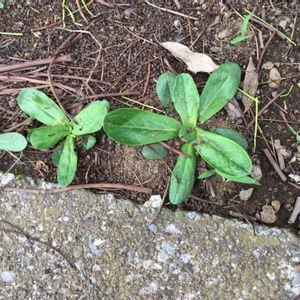 中央の二本生えている雑草です。雑草図鑑作りのため名前を調べています。教えていただけたら幸いです。