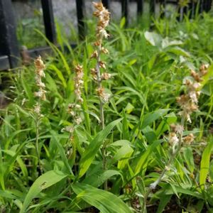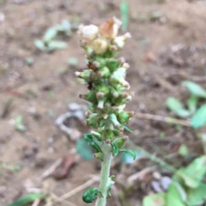 テラスの脇に生えた植物、忘れな草と思って見守っていますが、、 何の花ですか?雑草? どなたか教えて頂きたいです。