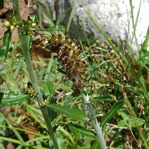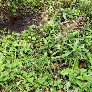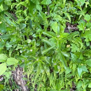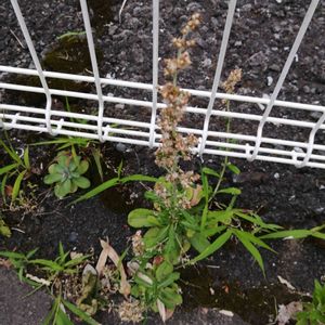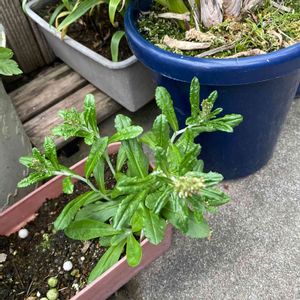 この植物の名前を教えてください💦 風か鳥が運んでくれて種が育って、普通なら雑草は引っこ抜くのですが何の植物か気になり育だててきましたが、未だに正体が分からず💦道ばたでみかける植物だと思うのですが… 葉が生えてくる中心部分や葉先に綿の様な白い物が小さい時からずっと付着しています🤔 早く抜いた方が良いかと思いますがどなたか分かる方ご教授いただきたいです。