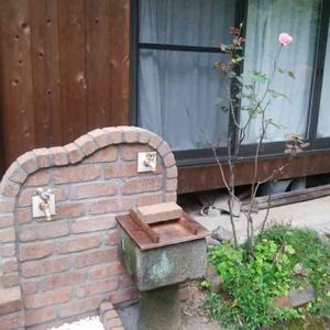 レンガ造りの水道横のカリナさんが可愛く咲きました。水道造りの様子はみどりのまとめにアップさせて頂いてます。