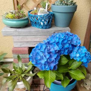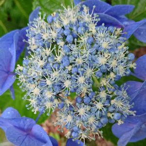 山紫陽花スターバーストと 気難しい紫陽花ロイヤルブルー お買い得コーナーでお迎えしてから5年間咲かずに やっと咲いてくれた紫陽花 毎年は咲いてくれなくて1年置きに咲いています