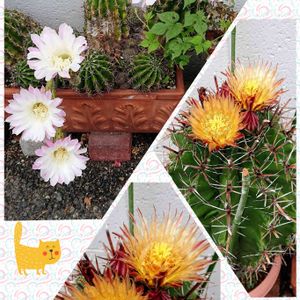 🌵☆🟠サボテンのお花🟠☆🌵 チェクポイントの一つのお宅、6/2投稿のデッカイサボテンが2回目の開花🟠🌵 そのお隣で枯れ枯れだった子たちもようやくお花が咲きました☆🌵