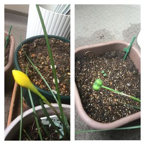 タマスダレの蕾と先日咲いた花の種です。 これは球根で増えると思っていたので、ちょっと嬉しいです