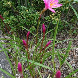 "四季の小径" 〜秋〜 <ゼフィランサス ロゼア(レインリリー)> 雨の日の後に開花するレインリリー♪ 晴れなのに^ ^