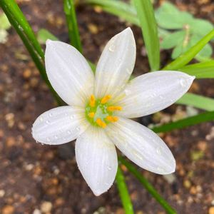 ゼフィランサス(タマスダレ) 真っ白なお花に黄色の蕊が綺麗です😊
