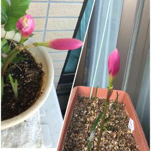 又ゼフィランサスの蕾が膨らんで来ました。右➡️が南で左⬅️が東にある花です 。 次々と咲いてくれて嬉しいです😃