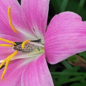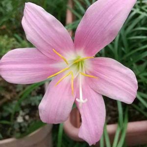 特に雨は降っていませんがレインリリーのピンクパンサーが一斉に咲きました❣️。 鉢植えなので雨は関係ないのかも?? オシベ、メシベが目立たない品種です。