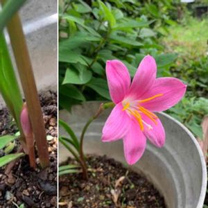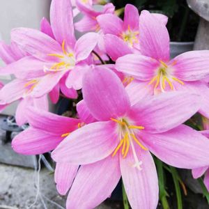 会社帰り、💚 いつものラーメン屋さんの💗 植木鉢から溢れ出る💖 ピンクの花🌸 ゼフィランサス💕 綺麗だべ!💝