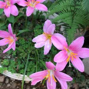 ゼフィランサス💗 お隣から頂きました。チョイチョイお花交換してます🌼だから、似たような花が隣同士咲いてます♫ 明日は月一のマルシェ、雨かな?