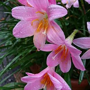 こんにちは☔️ 時折 激しい雨が降っています。 レインリリーが咲いてました💕💕 金曜日には 全く影もなかったのに 激しい雨で2輪は倒れてました💧 職場の小さな庭
