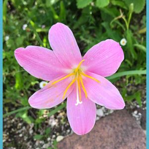 こんばんは😊 私もピンク投稿参加します💖 サフランモドキ.ゼフィランサス💕 出かけ先で見つけました🎶 我が家のゼフィランサスはまだ咲いてません(๑˃̵ᴗ˂̵)