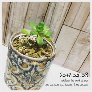 2017.04.29* おはようさんです〜٩(๑❛ᴗ❛๑)۶✨ 爽やかな おニクの日29の朝☀️ GW始まりました(o^^o) 今日は 私はランチに行ってきまーす(o^^o)* って…実は ついさっきまで すっかり忘れてて😫 思い出して 只今慌て中…😱😱😱 こんなことしてる場合じゃないやんかー ゴブレット寄せ植え💕 出来ました❀.(*´◡`*)❀.* *多肉寄せ植え *ピンクルルビー *白銀の舞 *ブロンズ姫 *ピーチネックレス