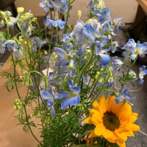 デルフィニウムをドライにして、ハーバリウムにしてみました。静かなブルーがきれいです🐱 左はバラさんトリオ😅 ちょっと置いたら雰囲気変わるはず(((^^;