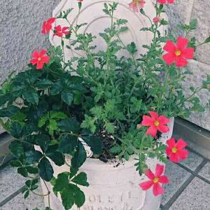 お隣は花壇と寄せ植えから 鮮やかな色のお花たちで 癒される😊💓