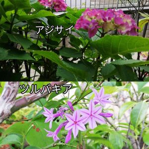 朝のパトロール 紫陽花がみずみずしいです 4月頃まで 枯れていた ツルバキア 復活して咲いています🎵