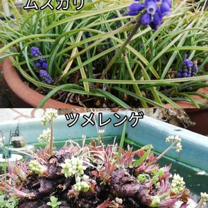 おはようございます😚 葉っぱに隠れて ちっちゃなムスカリが にょきにょきと出ていました 丹頂草も一斉に延びてきて🎵 ツメレンゲと してしまいましたが タンチョウソウとの間違いでした😅