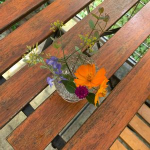 庭の花摘み コスモス 千日紅 ユーカリ フェンネル サルビア