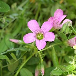 おはようございます。 野の花シリーズです。 はじめはイモカタバミだと思っていました。 💫ムラサキカタバミに修正いたします。 教えていただき感謝いたします🙇 ムラサキカタバミはかわいいピンク色に紫のスジが入り、中心が緑です。 繁殖力が強く簡単に育てられるそうです。 なんだかこの花に愛着がわいてきました。また出会いたいです。