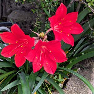 アマリリスの様なクンシランの様な… 散歩途中で出会った鮮やかな赤い花✨ キルタンサス バロータ・スペキオサ 素敵なお花でした❤️