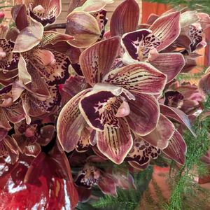 おはようございます😊 今日のお花💐 🌿シンビジウム🌿 ラン科シュンラン属(シンビジウム属) 多年草 2024.11.15 撮影📸 立寄った鉄板料理店で出会いました✨ 初めての色合いのお花に パシャリ🤳
