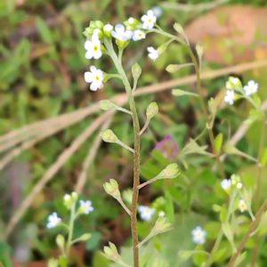 このお花ははじめワスレナグサだと思いました。 先日ハコベを発見しましたときに見つけました。 とても小さくて可愛いお花でした。 🌞💫訂正いたします、このお花はキュウリグサです。教えていただいて感謝いたします🙇
