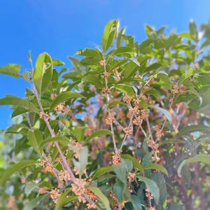 今日のお花🌼キンモクセイ♡ 結婚記念樹で〇〇年前に お迎えしました𖤣𖥧𖡼.𖤣𖥧 「キンモクセイの蕾が まだ なかど〜咲くかね?」って 心配していた 樹木担当の旦那さん ②もうすぐ咲くよ〜🧡