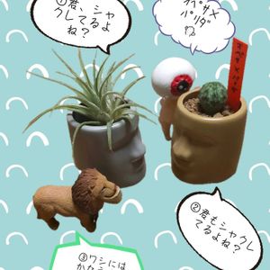 1枚目 🏷️モアイの日 シャクレ🗿鉢が何やら話してるよ🤣🎶 シャクレ🦁にはかなわないね🤣💕 左のエアプランツは雲仙花子さんから💚 右のオペサ✕パリダはマイメロちゃんから💚 2枚目 🏷️オヤジフェスティバルのみたりんさんのプレ企画当選品が届きました〜ヾ(。>﹏<。)ノ゙✧*。💕鬼太郎Boardとオヤジピック、可愛すぎる〜キュン💘キュン💘 しるこサンドも美味しいよね〜😋 KOHさんのオヤジ鉢とマイメロちゃんからの十二の巻も一緒に〜☺💕