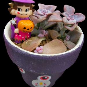 本日、2投目 🏷𓈒𓏸︎ペコちゃん祭り 🏷𓈒𓏸︎オヤジ祭り2025 1枚目 ハロウィンペコちゃんとKOHさん&雫さんのオヤジおぼうぼピータン鉢💜 雲仙花子さんから頂いた多肉 パープルディライト💜 葉っぱから👶がいっぱい!!出てきたよ〜☺️👍🏻💕 2枚目 ハロウィン号とセルルナさんに頂いた手作りペコちゃん☺️🫶️💗 もも。さんに頂いた多肉のネジネジになっで咲いている白いお花が可愛い〜☺️🫶🏻💕︎︎🤍🤍