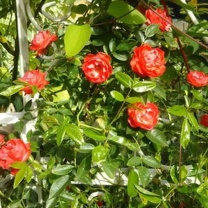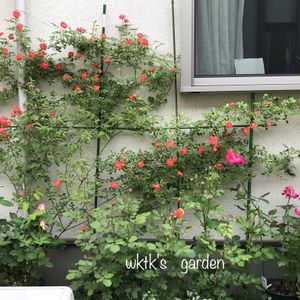 🌸珠玉(シュギョク)🌸 つるばらの珠玉が咲き始めました 果たして今年は壁一面を朱色に染めてくれるだろうか