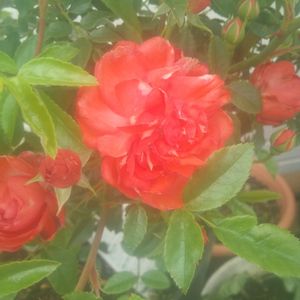 禅ローズ"珠玉"🌹 「マザーズデイ」からの枝変わり。 コロコロとして房で咲いてくれます🥰 珊瑚色で目を引く薔薇〜 今年は沢山咲いてくれました(⑅︎•ॢ◡︎•ॢ).。*♥︎